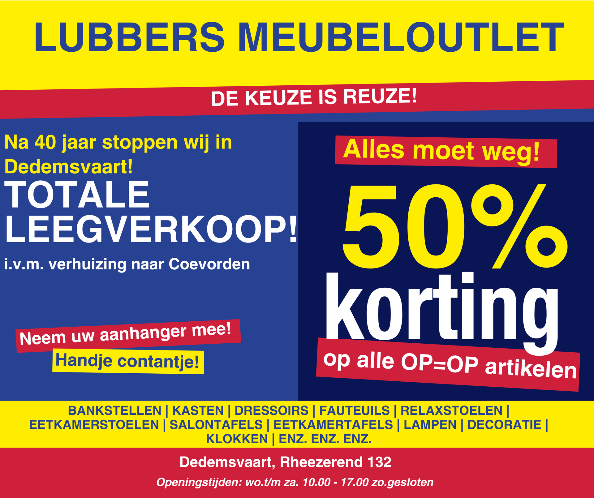Lubbers meubeloutlet in Coevorden en Dedemsvaart u kunt bij ons terecht voor: meubelen, stoelen, tafels, Eettafels, Bankstellen, Relaxstoelen, decoraties. onze winkel Lubbers meubelen heeft een regio functie voor Overijssel : Aadorp, Almelo, Bornerbroek, Mariaparochie, Borne, Hertme, Zenderen, Dalfsen, Lemelerveld, Nieuwleusen, Ankum, Emmen, Hoonhorst, Oudleusen, Bathmen, Colmschate, Deventer, Diepenveen, Lettele, Okkenbroek, Schalkhaar, Denekamp, Deurningen, Lattrop, Ootmarsum, Rossum, Saasveld, Tilligte, Weerselo, Noord-Deurningen, ’t Stift, Enschede, Boekelo, Glanerbrug, Lonneker, Usselo, Haaksbergen, Buurse, Sint Isidorushoeve, Ane, Balkbrug, Bergentheim, Bruchterveld, Dedemsvaart, De krim, Gramsbergen, Hardenberg, Hoogenweg, Kloosterhaar, Lutten, Mariënberg, Schuinesloot, Sibculo, Slagharen, Daarle, Daarlerveen, Haarle, Hellendoorn, Nijverdal, Hulsen, Hengelo, Beckum, Ambt Delden, Bentelo, Delden, Diepenheim, Goor, Hengevelde, Markelo, Azelo, Grafhorst, IJsselmuiden, Kampen, ’s-Heerenbroek, Wilsum, Zalk, De Zande, Zuideinde, Beuningen, De Lutte, Glane, Losser, Overdinkel, Glane-Beekhoek, Oldenzaal, Olst, Welsum, Wesepe, Wijhe, Boerhaar, Den Nul, Elshof, Herxen, Beerze, Beerzerveld, Lemele, Ommen, Vilsteren, Witharen, Broekland, Heeten, Heino, Laag Zuthem, Liederholthuis, Luttenberg, Mariënheem, Nieuw-Heeten, Raalte, Holten, Rijssen, Dijkerhoek, IJhorst, Punthorst, Rouveen, Staphorst, Slingenberg, Basse, Belt-Schutsloot, Blankenham, Blokzijl, Eesveen, Giethoorn, Kalenberg, Kallenkote, Kuinre, Oldemarkt, Onna, Ossenzijl, Scheerwolde, Steenwijk, Steenwijkerwold, Sint-Jansklooster, Vollenhove, Wanneperveen, Willemsoord, Witte Paarden, Dwarsgracht, Heetveld, Albergen, Fleringen, Geesteren, Harbrinkhoek, Langeveen, Manderveen, Mariaparochie, Reutum, Tubbergen, Vasse, Den Ham, Geerdijk, Vriezenveen, Vroomshoop, Westerhaar, De Pollen, Vriezenveensewijk, Enter, Hoge Hexel, Wierden, Genemuiden, Hasselt, Zwartsluis, Kamperzeedijk, Zwolle, Wijthem, Windesheim, 't Haantje, Aalden, Alteveer, Amen, Anderen, Anloo, Annen, Annerveensche Kanaal, Ansen, Assen, Balinge, Balloërveld, Balloo, Barger-Compascuum, Beilen, Benneveld, Borger, Boschoord, Bovensmilde, Broekhuizen, Bronneger, Bronnegerveen, Bruntinge, Buinen, Buinerveen, Bunne, Coevorden, Dalen, Dalerpeel, Dalerveen, Darp, De Groeve, De Kiel, De Punt, De Schiphorst, De Wijk, Deurze, Diever, Dieverbrug, Diphoorn, Doldersum, Donderen, Drijber, Drogteropslagen, Drouwen, Drouwenermond, Drouwenerveen, Dwingeloo, Echten dr, Eelde, Eelderwolde, Een, Een-West, Eerste Exloërmond, Ees, Eesergroen, Eeserveen, Eext, Eexterveen, Eexterveensche Kanaal, Eexterzandvoort, Ekehaar, Eldersloo, Eleveld, Elim, Elp, Emmen, Emmer-Compascuum, Erica, Erm, Eursinge gem de Wolden, Eursinge gem Midden-Drenthe, Exloërveen Exloo, Fluitenberg, Foxwolde, Frederiksoord Garminge, Gasselte, Gasselternijveen, Gasselternijveenschemond, Gasteren, Geelbroek, Gees, Geesbrug, Geeuwenbrug gem Diever, Gieten, Gieterveen, Grolloo, Havelte, Havelterberg, Hijken, Hollandscheveld, Holsloot, Hoogersmilde, Hoogeveen, Hooghalen Huis ter Heide, Kerkenveld, Klazienaveen, Klazienaveen-Noord, Klijndijk, Koekange, Langelo, Leutingewolde, Lieveren, Linde, Loon, Mantinge, Marwijksoord, Matsloot, Meppel, Meppen, Midlaren, Nietap, Nieuw Dordrecht Nieuw-Amsterdam, Nieuw-Annerveen, Nieuw-Balinge, Nieuw-Buinen, Nieuw-Roden, Nieuw-Schoonebeek, Nieuw-Weerdinge, Nieuwediep, Nieuweroord, Nieuwlande, Nieuwlande gem Coevorden, Nijensleek, Nijeveen, Nijlande, Nooitgedacht, Noord-Sleen, Noordscheschut, Norg, Odoorn, Odoornerveen, Oosterhesselen, Oranje Oud-Annerveen, Oude Willem, Oudemolen, Papenvoort, Paterswolde, Peest, Peize, Pesse, Rhee Roden, Roderesch, Roderwolde, Rogat, Rolde, Roswinkel, Ruinen, Ruinerwold, Schipborg, Schoonebeek, Schoonloo, Schoonoord, Sleen, Smilde, Spier, Spijkerboor, Steenbergen gem Noordenveld, Stieltjeskanaal, Stuifzand, Taarlo, Ter Aard, Tiendeveen, Tweede Exloërmond, Tweede Valthermond, Tynaarlo Ubbena, Uffelte, Valthe, Valthermond, Veenhuizen, Veeningen, Veenoord, Vledder, Vledderveen, Vredenheim, Vries, Wachtum, Wapse, Wapserveen, Wateren, Weiteveen, Westdorp, Westerbork, Westervelde, Wezup, Wezuperbrug, Wijster, Wilhelminaoord, Winde, Wittelte Witteveen, Yde, Zandberg, Zandpol, Zeegse, Zeijen Zeijerveen, Zeijerveld, Zorgvlied, Zuidlaarderveen, Zuidlaren, Zuidveld, Zuidvelde, Zuidwolde, Zwartemeer, Zweeloo, Zwiggelte, Zwinderen